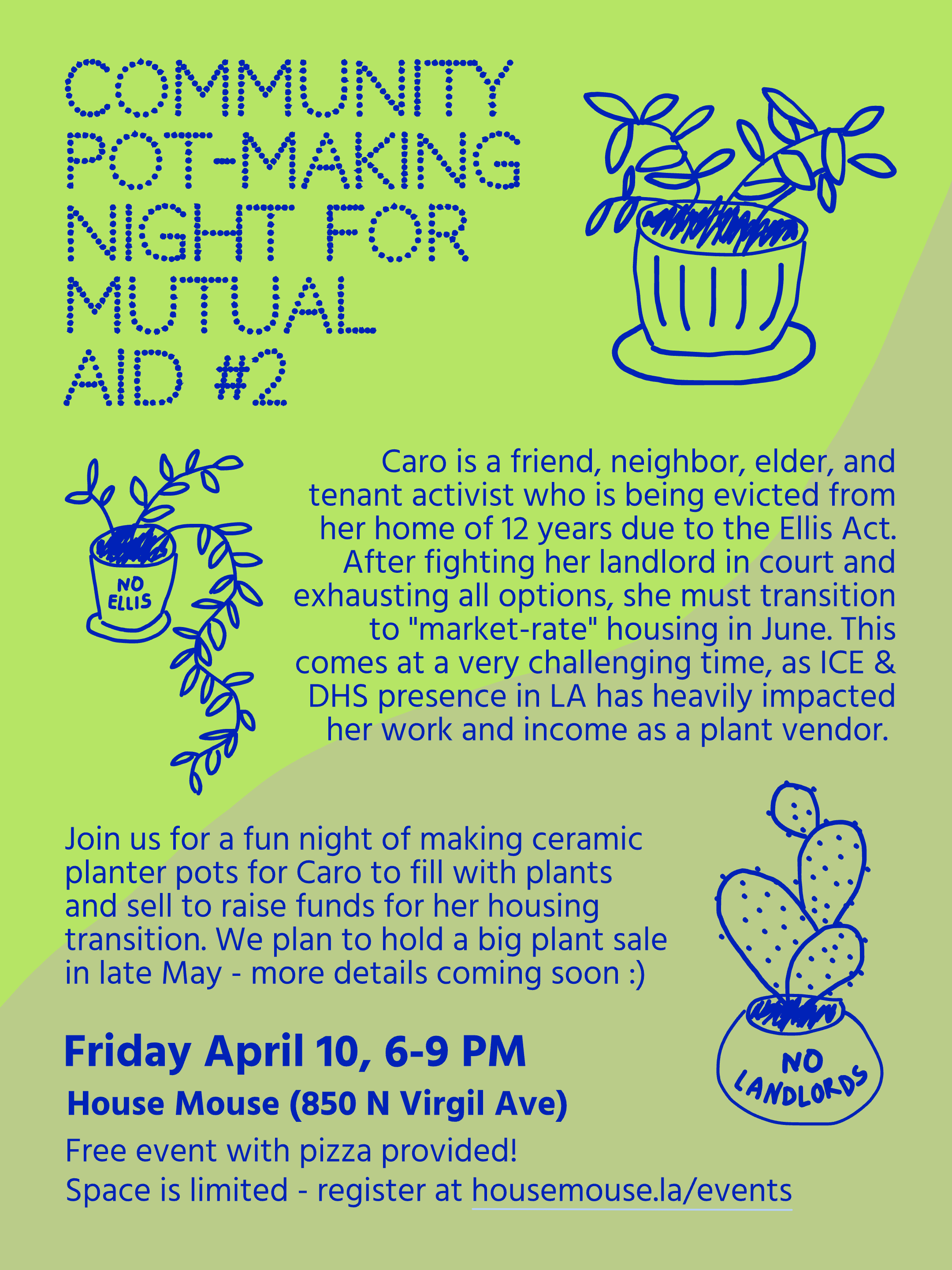 Join us for a night of mutual aid and collective care as we come together to support community member Caro through her upcoming housing transition due to unjust eviction.